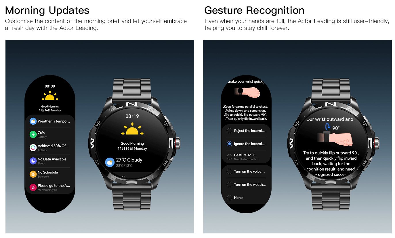 Kieslect Actor Leading is not just a simple smartwatch, but also a business partner that combines fashion and practicality. Being tailored for modern elites, it integrates high-end materials, advanced technology, and classic design, which can perfectly reflect your personal charm and taste.
