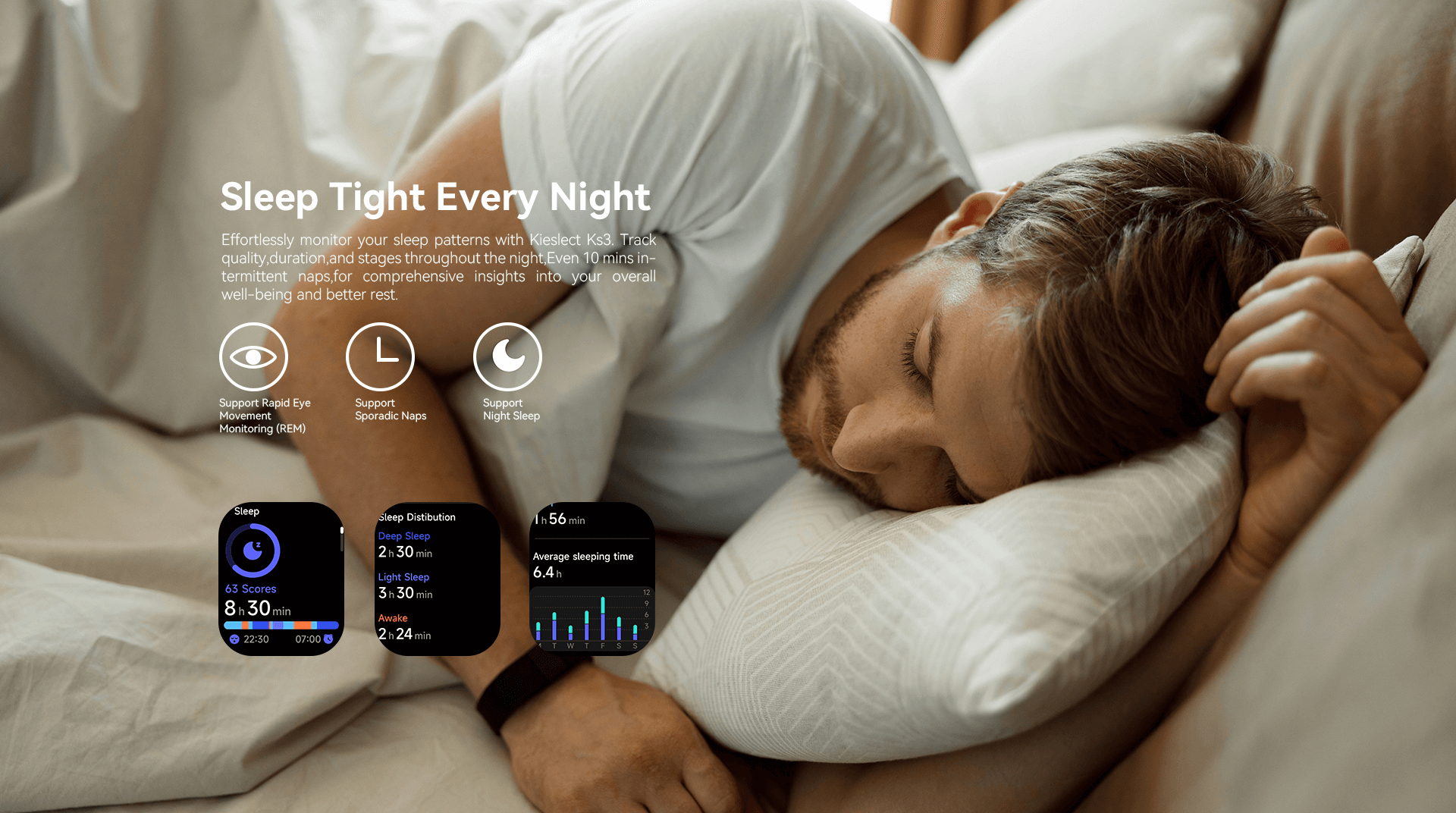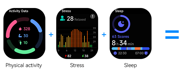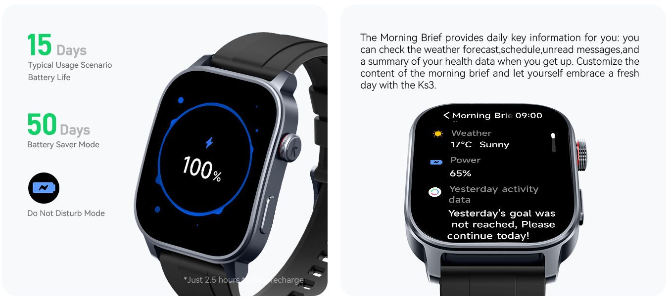 The Kieslect KS3 intelligently tracks your physical activity, stress, and sleep every 30 minutes. By analyzing your heart rate, activity levels, and sleep quality, it provides personalized insights to help you manage your energy throughout the day.