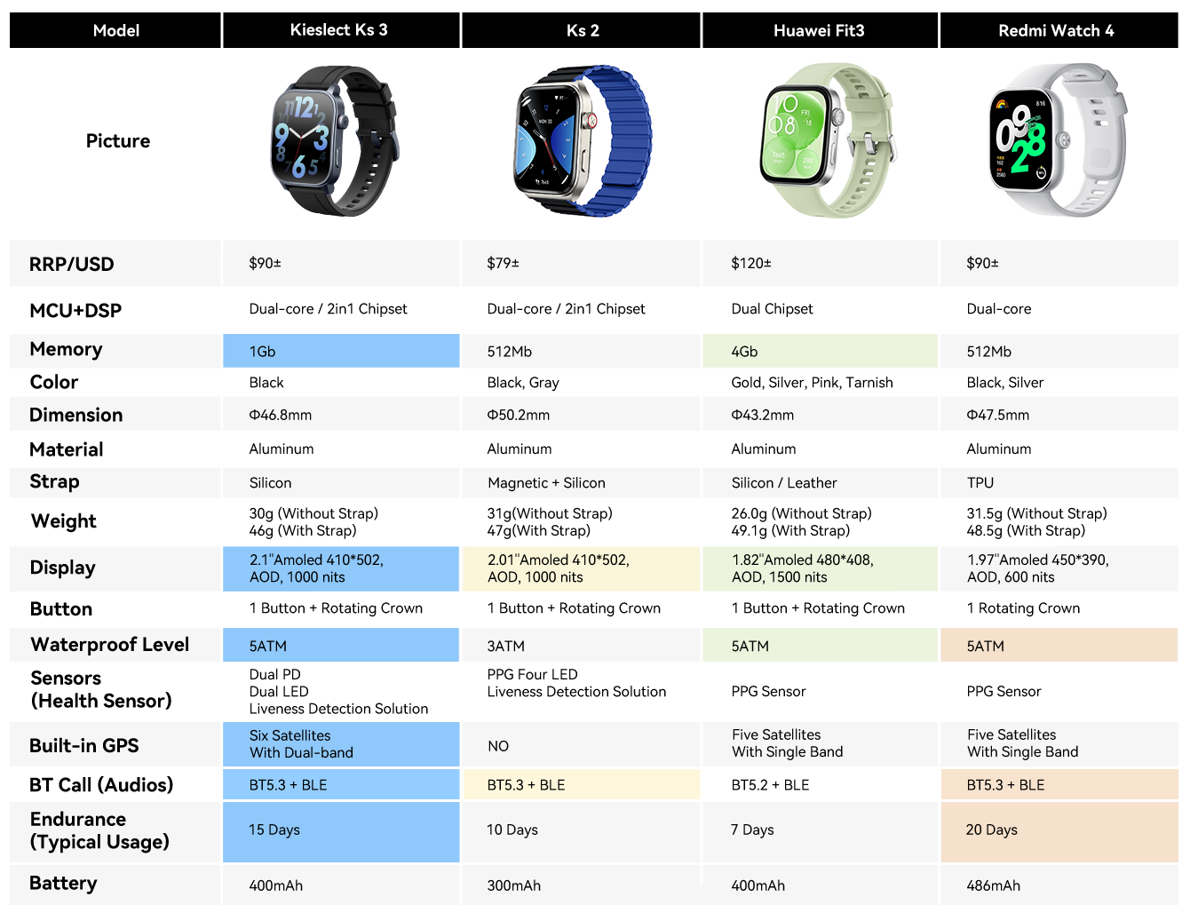 Product Specs Comparison
